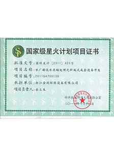 國家級星火計劃項目證書